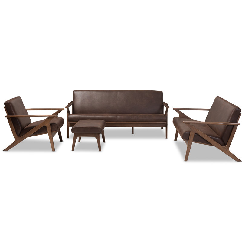 Enrico Mid Century Modern Wood Fabric 4 Piece Living Room Set For